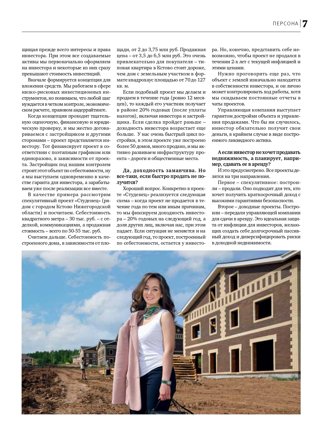 Инвестировал 3000000 в квадрохаус под г Кстово. Сам я не местный, компанию посоветовал хороший друг, который уже инвестировал с GLS. Гарантии железные - в залог или в собственность достается коттедж, регистрируется в Росреестре. Вот уже подходит к концу третий месяц как я вложился и скоро снова прилетят мои проценты - чуть больше 50к. Очень рад сделкой. Самое выгодное на мой взгляд, что можно найти на данный момент. В банк нести деньги нет никакого резона.